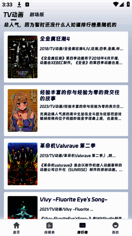 3、详细介绍:每部动画都配备剧情、角色、制作团队等详细内容,使用户全面了解作品。