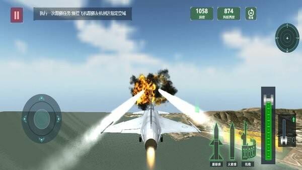 3、游戏的飞行操作模拟极为真实,玩家可通过倾斜手机、触控操作等方式控制战机的飞行姿态,体验真正的空中驾驶感受。