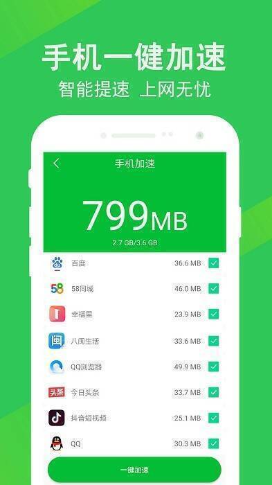 3. 可加速手机内存,轻松解决手机卡顿问题,让手机更快更干净。