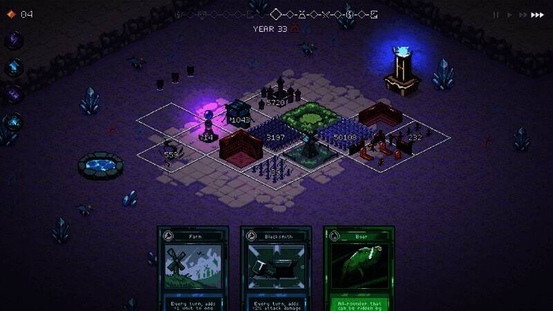 每回合抽取一张卡牌,玩家可选择用其建设王国、招募士兵或强化防御,合理分配资源十分重要。