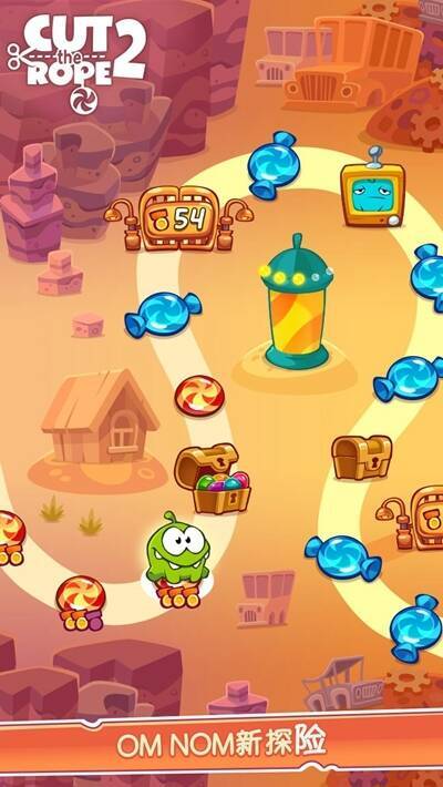 1. 玩家需剪断绳子,运用物理原理让糖果落入奥姆诺姆口中。