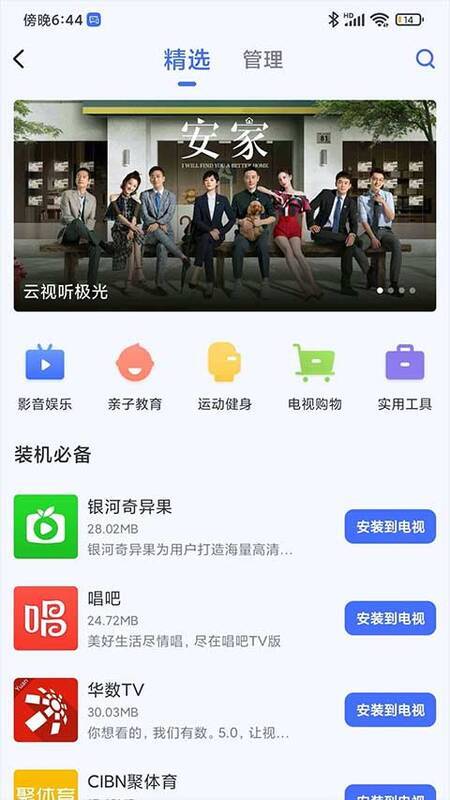 5、连接成功后,即可用手机 app 对电视设备进行遥控、投屏等操作。