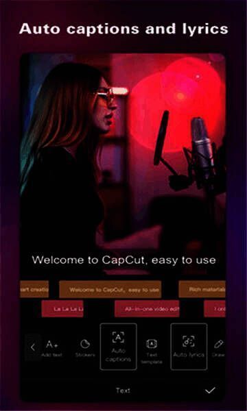 可为视频添加数百万个音乐片段和音效,登录可同步喜欢的TikTok音乐,还能从视频中提取音频、剪辑和录制。