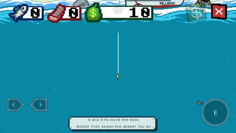 3、使用A和D键移动鱼钩,鱼钩越往深处,钓到优质鱼的几率越大。