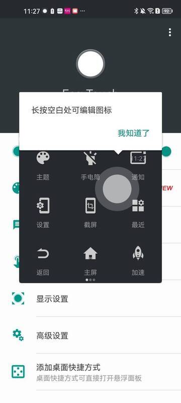 可设置屏幕亮度、音量、蓝牙、WiFi、移动网络、自动旋转等快捷键,支持小白点手势自定义功能。还能一键清理内存和缓存,把常用的设置为常用。