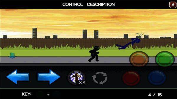 以最基础的火柴人、赤手空拳且不带任何武器为例,来讲解几个连招技巧。先熟悉几个基本按键操作。