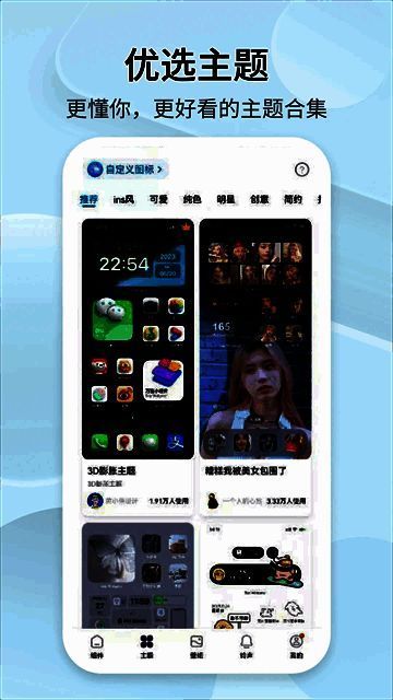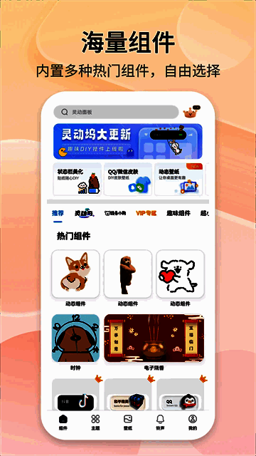 软件包含小部件、壁纸、铃声等,各部分有多种类型可供免费使用,包括高清壁纸和各种主题,一键即可下载设置。它与众多手机型号兼容,保障用户体验。内置的小工具和信息类小组件能满足日常生活和工作的多种需求,如实时天气、备忘录等,提供便捷的信息获取和操作。