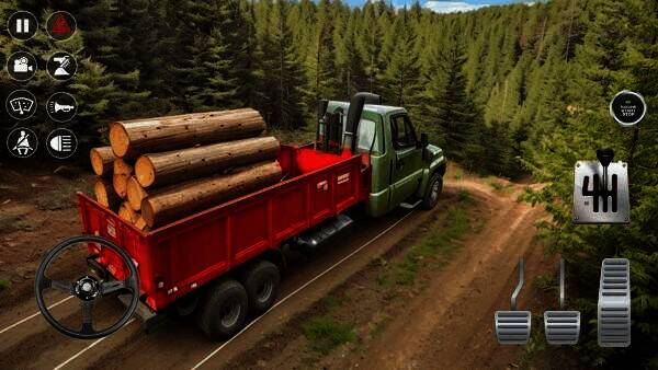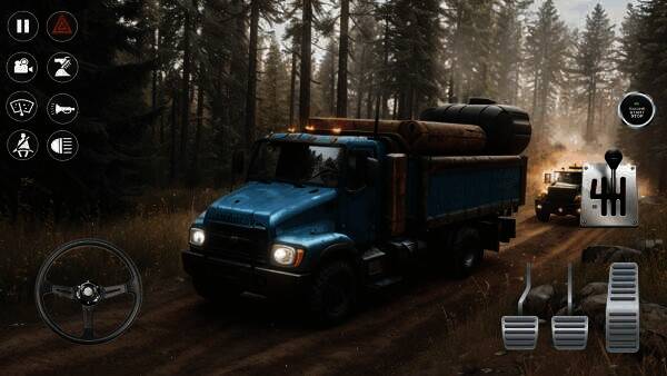 丰富的越野场景,玩家驾驶卡车穿越崎岖道路、陡峭山坡和复杂地形,增加驾驶挑战。