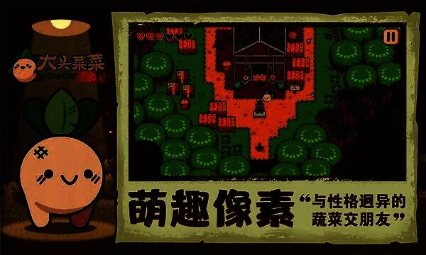 1、萌趣像素画风:人物与场景采用复古像素风呈现,大头菜天真可爱,怪物设计俏皮有趣,每一帧都治愈感满满。