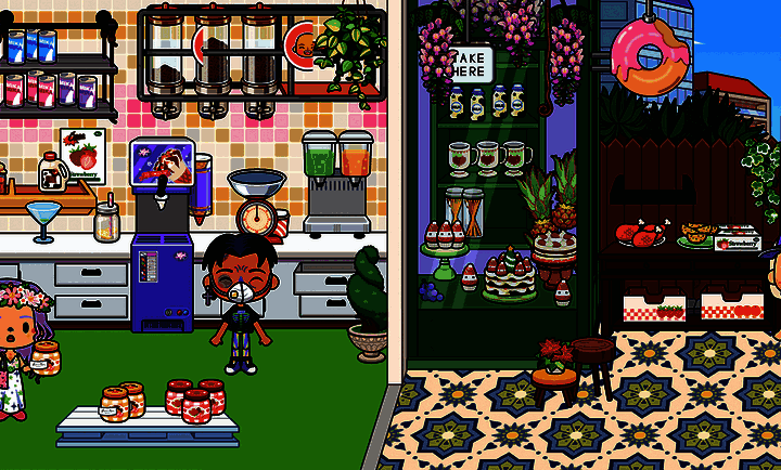 3、能与游戏中的物品和角色互动,如喝饮料、享受美食、个性化装扮等,增添游戏乐趣。