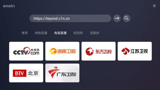 Emotn浏览器魔改版是一款专为智能电视和电视盒量身打造的浏览器平台。它界面简洁、功能强大且无广告,为用户提供高效、便捷、个性化的互联网服务,让大屏幕浏览更加轻松舒适。用户能轻松浏览网页、观看视频、关注节目以及欣赏各类流媒体内容。