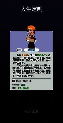 阶段推进:玩家从婴儿期开始,依次经历童年、教育、就业、爱情和组建家庭等阶段,点击“开启人生”随机触发独特旅程。