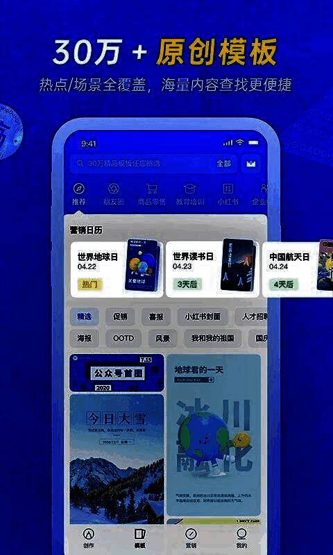 3、批量模板:提供大量海报模板,用户可按需选择和定制。