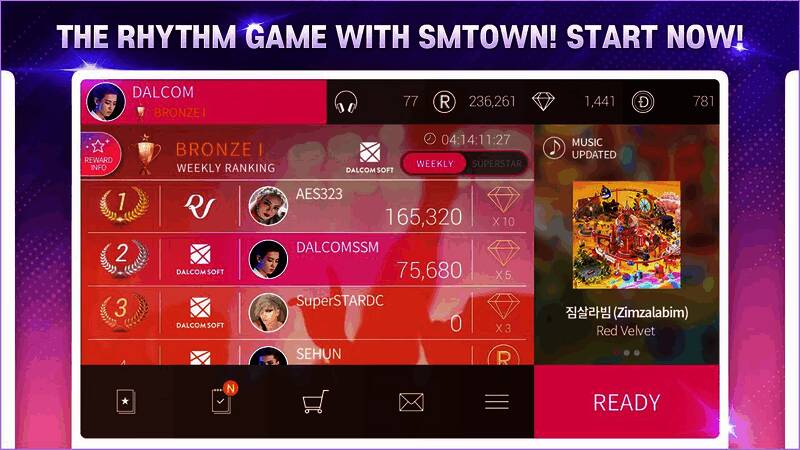 6、游戏有普通的关卡Weekly和每天随机打一首歌的Superstar模式,这两个模式都有刷榜奖励。Weekly的榜单按所有歌手中每个歌手分数最高的五首歌的分数总和排名,达到一定名次可以提升等级,获得奖励和金币加成。