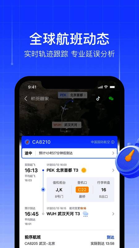 1. 及时了解感兴趣航班的实时动态,如到达、离开时间等详细信息。