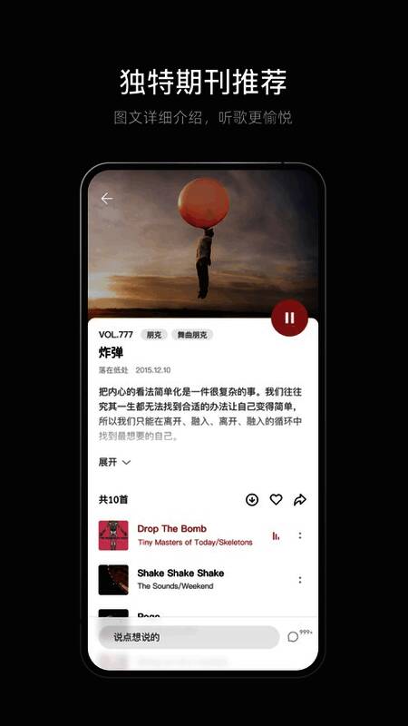 - 无限免费听歌:提供完全免费的高品质音乐服务。