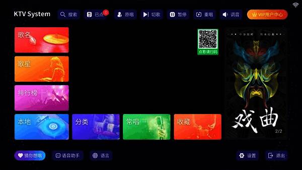 1、点歌操作:打开应用后,用户可用手机号码、微信、QQ等登录,登录后进入KTV搜索想唱的歌曲,点击“KTV”按钮即可开唱。