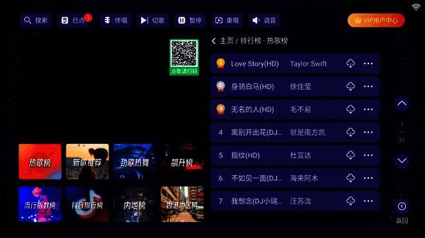 4、多样搜索:提供多种搜索方式,点歌就像KTV点歌系统一样便捷。