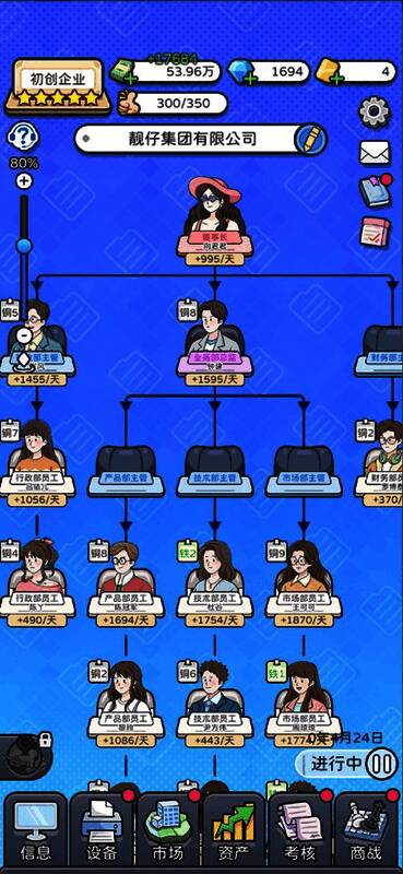 你将扮演一位刚刚接手公司的新任董事长,从一间简陋的小办公室开始,通过精准的市场分析、产品创新以及高效的团队管理,逐步扩展业务版图,最终建立起属于自己的商业帝国。玩家可以自由调整公司架构,成立新部门或组建董事会,以适应不断发展的企业需求。