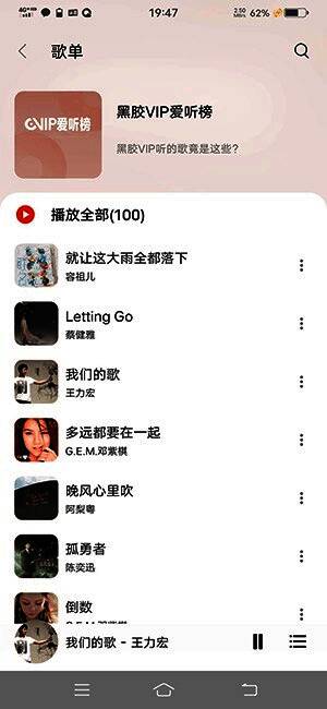 2、音频资源丰富,界面无广告,有多区域音频下载、MV在线播放服务和无损音质选项。