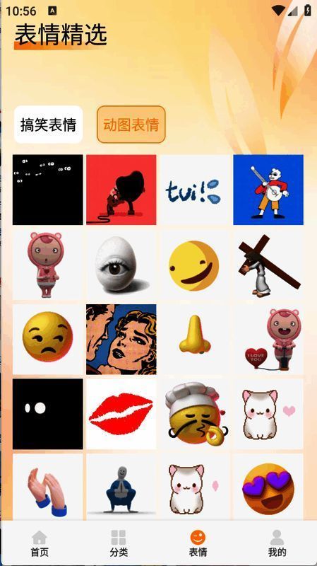 4、“表情”页面汇集海量动态静态表情包。