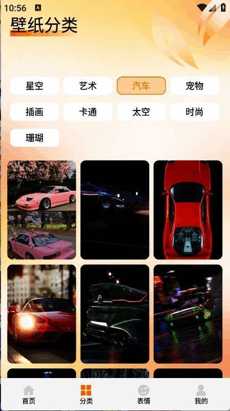 3、分类页面详细归类壁纸,涵盖艺术、卡通、宠物等类型。