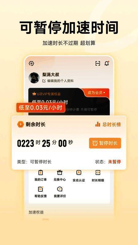 3、灵活计费模式:业内首创按分钟计费,时长还能随时暂停,确保玩家每一分钱都花得值,避免加速时间的浪费。
