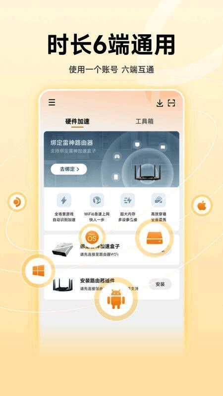 2、跨平台兼容性:支持Windows、MacOS、NNPC、雷神App、主机、路由器,满足多平台加速需求,覆盖所有使用场景,实现不同设备间的无缝切换。