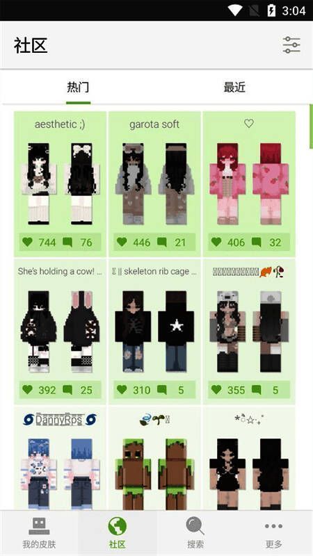 所有游戏功能免费,让玩家在我的世界体验乐趣。有数百万不同角色皮肤,如足球运动员、动漫女孩、超级英雄等。还能依据图片内容创建粗糙皮肤,感受皮肤编辑独特乐趣。
