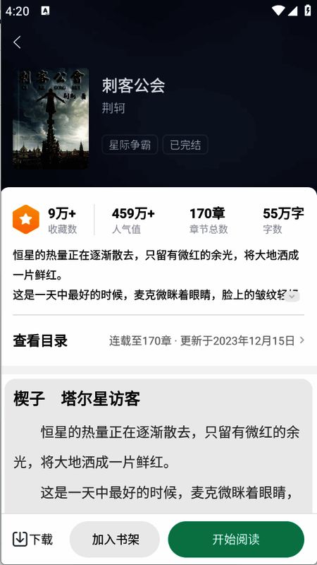 5、直接点开想看的小说进入详情页,点击“开始阅读”。