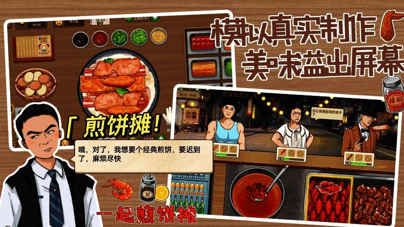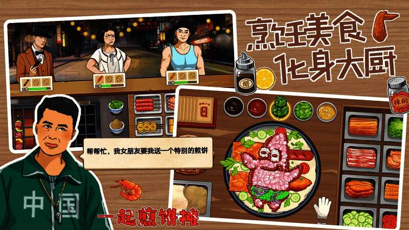 2. 经营管理:玩家不仅要专注于煎饼制作,还要对摊位进行全面经营,管理好食材的采购和储存,提升摊位的服务质量。