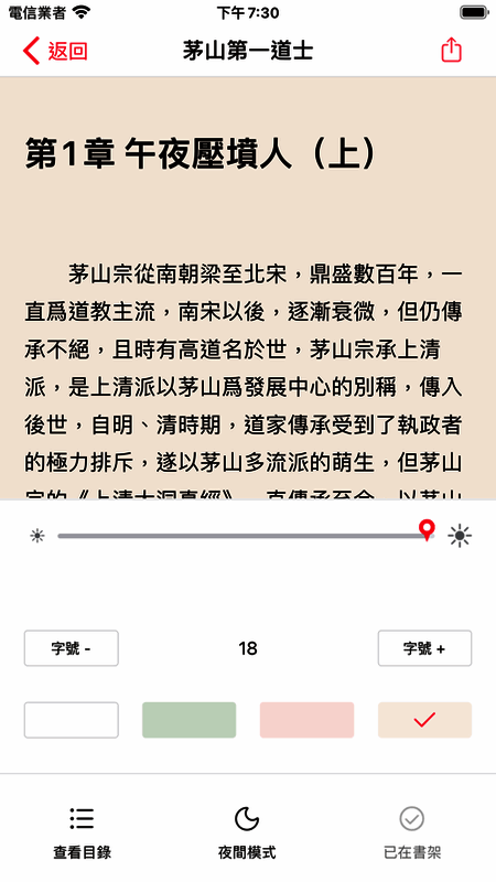 3. 阅读设置与书签功能:提供丰富阅读设置选项,可自由调节字体、亮度等,轻松看书。