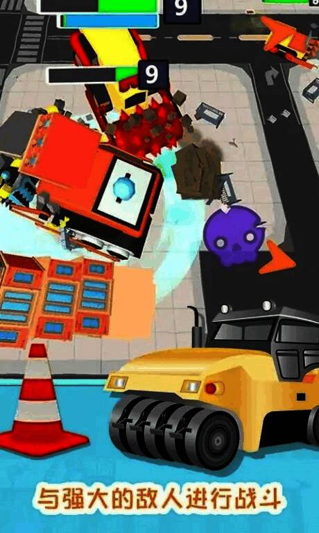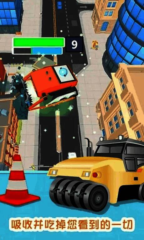 1、这是一款竖屏解压游戏,玩家操控巨型压路机,对城市中的各类建筑和物体进行破坏。