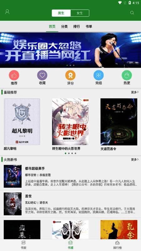 2. 能够依据读者的喜好推荐小说,还有众多受欢迎的列表供读者选择。