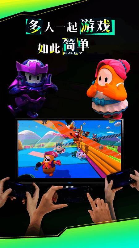 此版本需配合手机 app 使用,将手机当作游戏手柄。下载 app 后,在 app 里挑选想玩的游戏,进入游戏界面点击【电视一起玩】,接着扫描二维码。电视投屏连接成功后,就能在手机上邀请好友一起游戏。