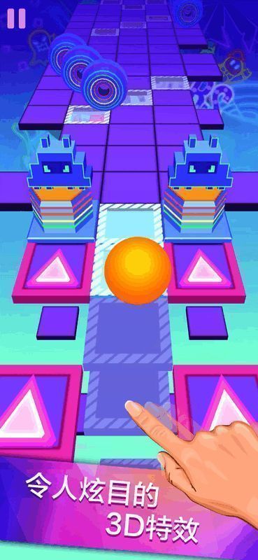 2. 用手指左右拖动小球避开障碍,别脱离轨道。跟随音乐节奏不断挑战,让手速越来越快。