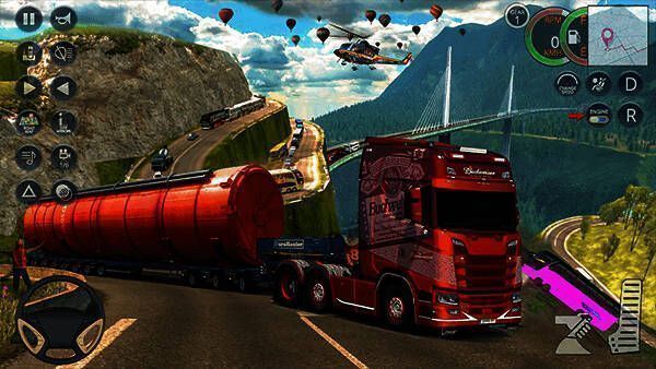 1、任务与挑战:玩家在游戏中接受各类运输任务,跨越城市、沙漠和山区,挑战不同道路与天气。