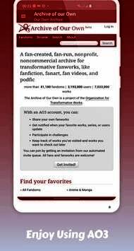 AO3是一个二次元社区交流平台,有着众多的次元玩法。在这里,你可以谈论生活趣事、分享游戏心得,还能寻找同好一起玩游戏,平台能让你拥有更有趣的交流和互动体验。