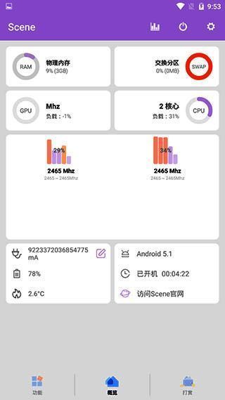 Scene8官方下载最新版本是一款广受赞誉、功能强大的安卓系统工具箱应用。它的显著优势是用户无需获取超级管理员权限,就能顺畅使用全部功能,大大增强了使用的便捷性与安全性。借助Scene8,用户能实时查看安卓系统详细信息,如版本号,还能了解CPU使用率和核心负载情况,及时处理性能问题。