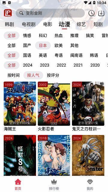 2、设有电影、电视剧、动漫、综艺等热门榜单,且提供高清画质选择。