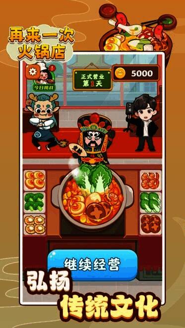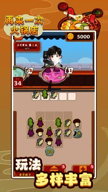再来一次火锅店最新版游戏是一款超有趣的模拟经营游戏。玩家化身为火锅店老板,开启经营之旅,要招待好食客,研发新颖菜品,逐步扩大店铺规模,向着知名火锅大亨的目标迈进。