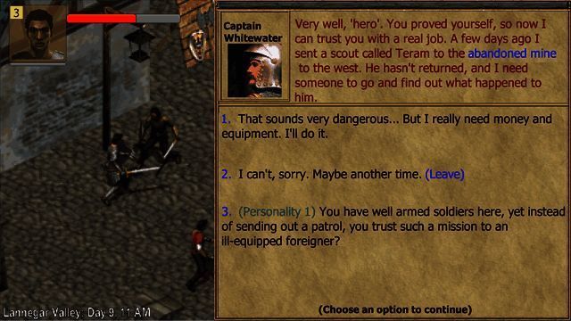 任务需要:调查进入兰内加峡谷西部矿山的侦察兵特拉姆的遭遇