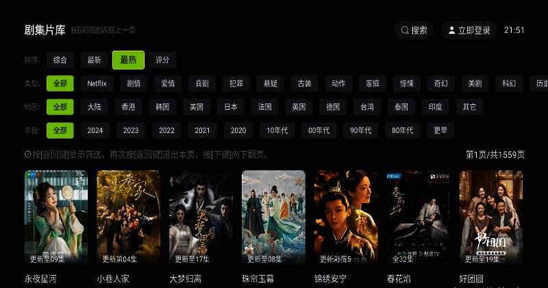 4. 大屏适配:专为电视用户设计,支持大屏幕观看,带来震撼视觉体验。