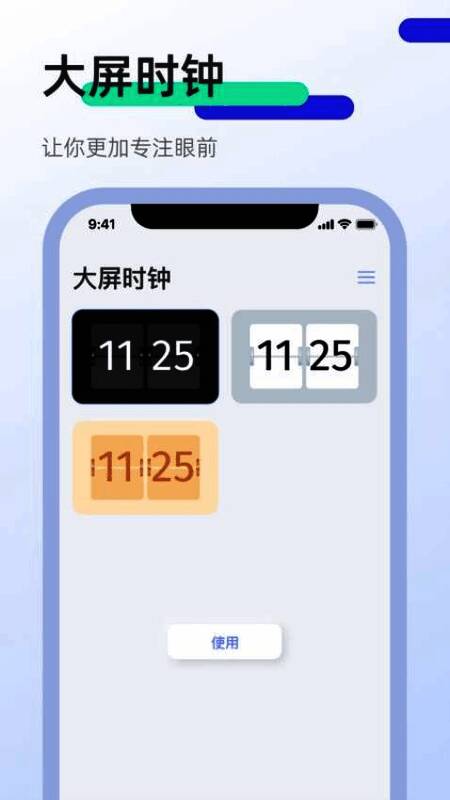 - 大屏幕时钟:水平显示当前系统时间,自动翻页,造型时尚。