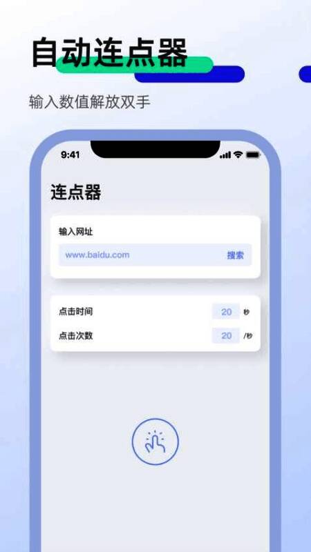屏幕连点器app是一款功能强大的连接辅助软件,为用户提供丰富优质的连接器脚本资源,能有效解决重复高频点击难题,让双手得以解放。它能高度模拟手指在屏幕上的点击动作,自动执行预设点击任务。用户可按需灵活设置点击位置、频率和次数,适用于各类需重复点击的场景,且操作简单便捷。