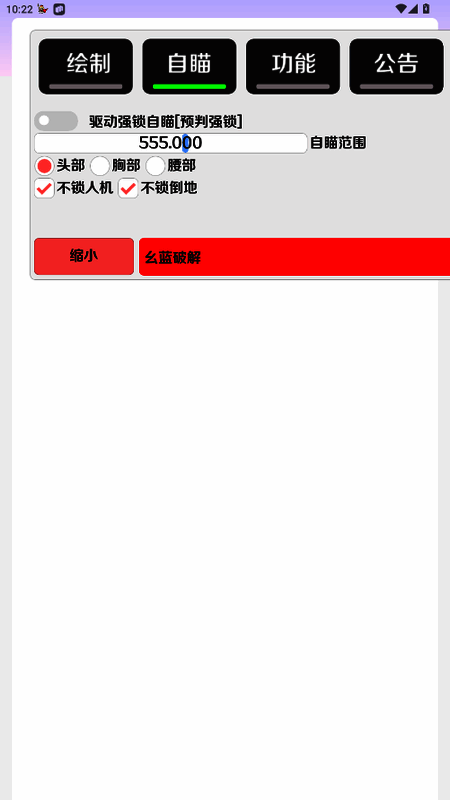 自动瞄准辅助:该软件内置自动瞄准功能,可自动锁定敌人,降低玩家操作难度,让射击更轻松、舒适。