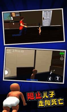 这是一款超有趣的游戏,设有爸爸和儿子两种角色,玩家可任选其一开启游戏。随着剧情推进完成任务,就能解锁更多内容。还能切换视角,第一视角会让游戏节奏更紧张刺激。
