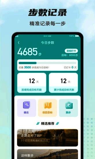 2. 精准记录:精确记录每一步,让用户自由畅快运动。