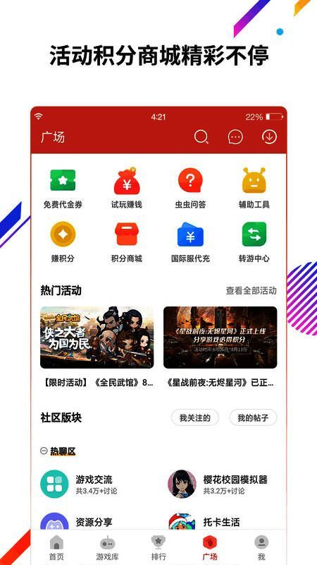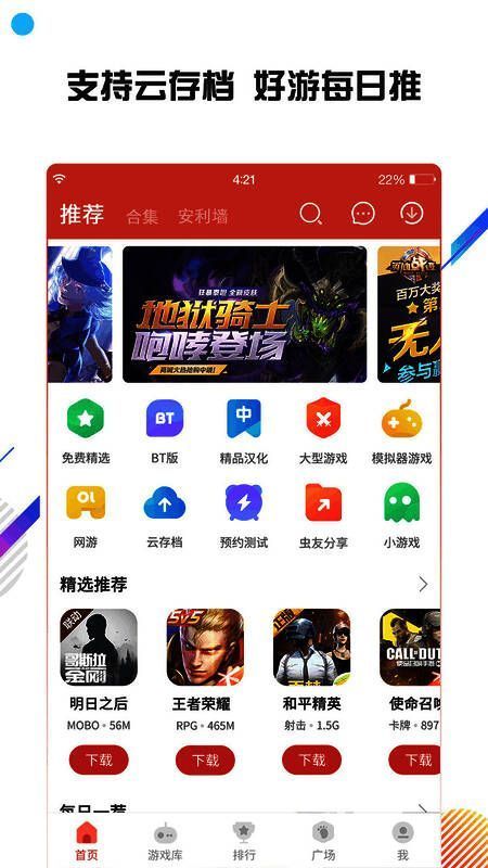 虫虫助手安卓游戏盒为玩家提供各种手机游戏,包括电脑移植手游、本地化手游、国际手游等,让你第一时间玩到最新手游。还有许多玩家在平台上创建和上传自己的游戏,为手游玩家提供多样服务,支持各类游戏信息更新,维护相关社交平台。它致力于为移动游戏玩家打造出色的游戏体验,带来更全面的游戏下载感受!