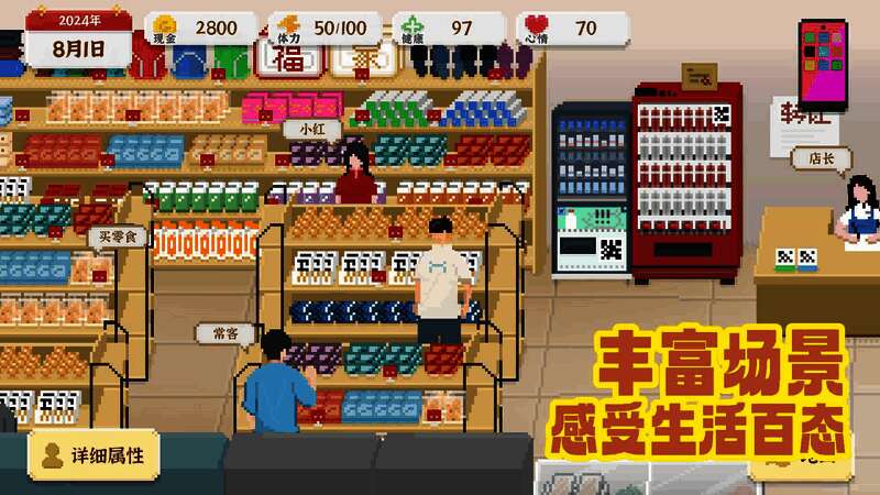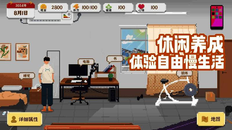 玩家可自由规划角色的职业发展,成为职场精英、投身艺术创作或是自主创业都由自己决定。还能塑造不同性格特征,如乐观、开朗、沉稳、内向等,不同性格会触发不同事件与剧情。游戏构建了丰富的现实生活场景,包括办公室、菜市场、图书馆等,每个场景细节满满,展现生活的多样。